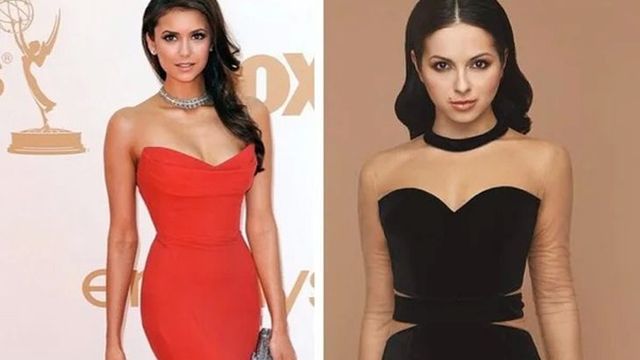 Жгучая красота досталась Нине Добрев, известной по роли в сериале «Дневники вампира», от родителей-болгар. Среди родственников Нюши нет южнославянских народов – певица знает лишь о своих татарских корнях. Так или иначе, эти две девушки очень похожи. Но есть и интересные различия: родинка над уголком рта, которую Нюша считает своей изюминкой. Девушкам вряд ли когда-либо придется соперничать. Нюшу мало интересует киноиндустрия, тогда как Добрев не может похвастаться идеальным голосом: высокие ноты за нее в подростковой комедии «Американская аллея» (2008) исполнила певица Кили Хоукс.