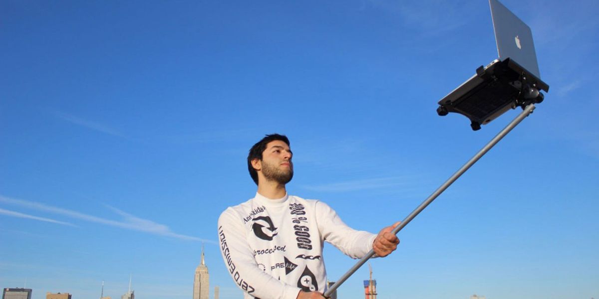 Хотя сама по себе идея селфи-палки имеет право на существование (она позволяет снимать себя с более выгодного ракурса и охватывать больше пространства в кадре), ее применение к ноутбуку выглядит довольно абсурдно.Почему нелепо: Ноутбуки значительно больше и тяжелее смартфонов. Удерживать ноутбук на вытянутой руке с помощью селфи-палки будет неудобно и утомительно, а сама конструкция должна быть достаточно прочной и громоздкой, чтобы выдержать вес устройства. Это делает весь процесс неуклюжим и непрактичным.