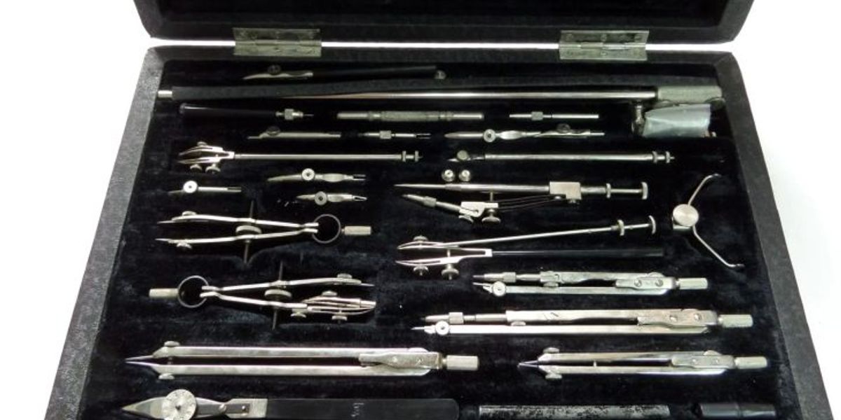 Готовальня – набор инструментов для выполнения чертежей. В средних классах готовальни были попроще – в пластиковом корпусе и с минимальным набором инструментов: циркуль, транспортир, линейка, сменный грифель и ластик.