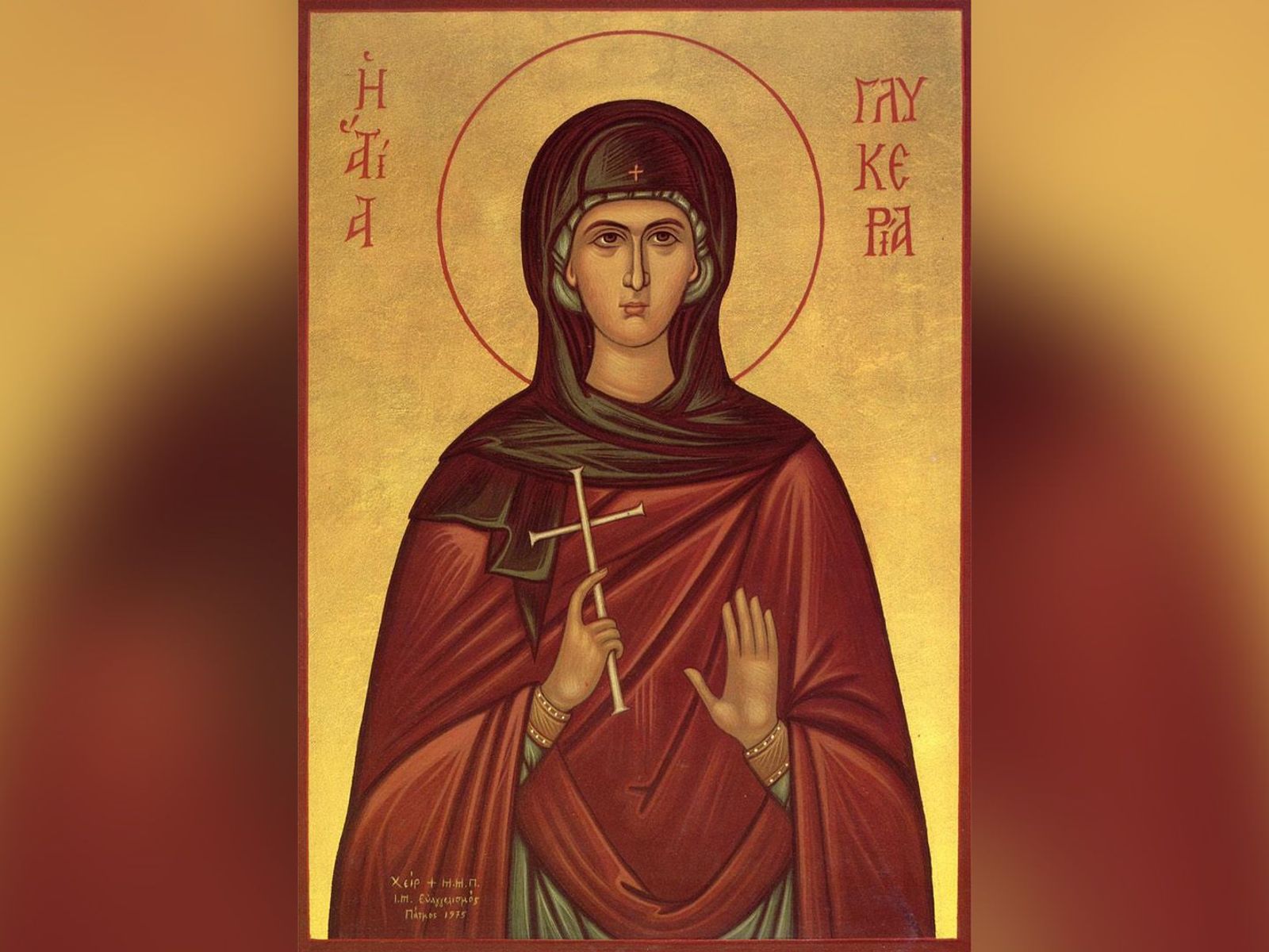 Вошедший поутру в тюрьму стражник увидел это и уверовал в Христа, за что также был казнен. Саму же Гликерию отдали на растерзание зверям. Она молилась, чтобы Господь забрал ее к себе. Первый лев лёг у её ног, второй лишил её жизни, но не изуродовал тело.