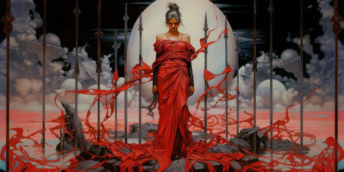 - Одежда. Девушка носит красное. Красный цвет в таро ассоциируется со страстью и рвением, однако темные цвета окружающей среды подразумевают, что негативные эмоции не дают проявить эту страсть и рвение в полной мере.