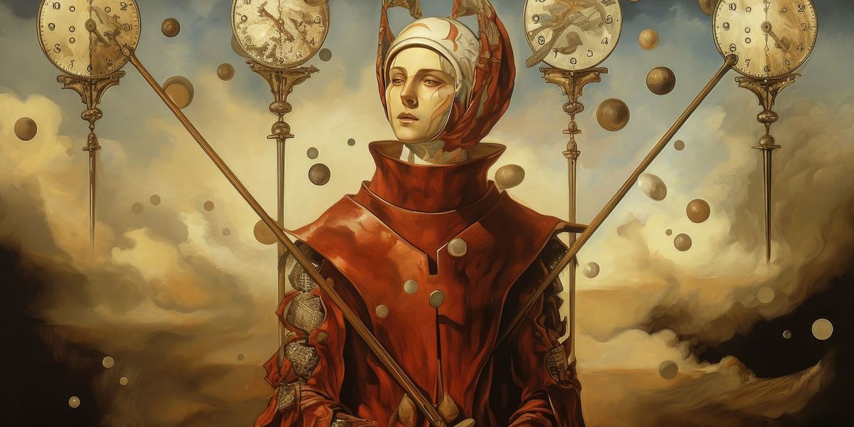 - Человек не держит обе руки на жезлах, а только левую. Это указывает на неуверенность. У него есть все необходимые ресурсы и, скорее всего, подробный план, но он все еще не решается перейти к конкретным действиям.