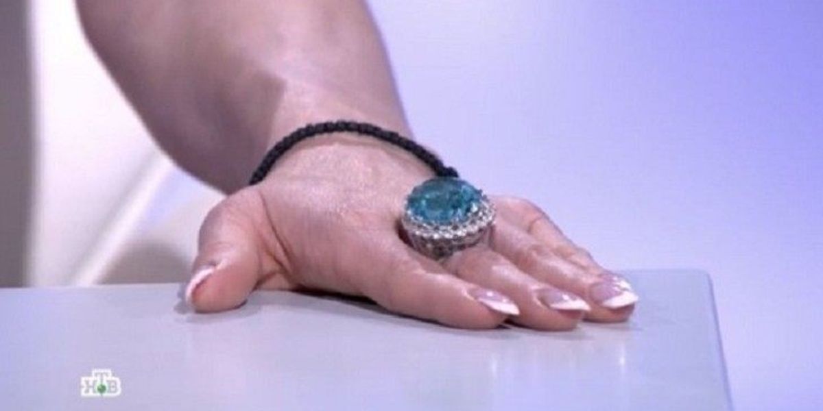 Выяснилось, что украшение ей подарил бывший возлюбленный, с которым Волочкова не так давно рассталась. Анастасия рассказала, что огромный камень на кольце – это турмалин Параиба. По кругу его обрамляет россыпь бриллиантов.