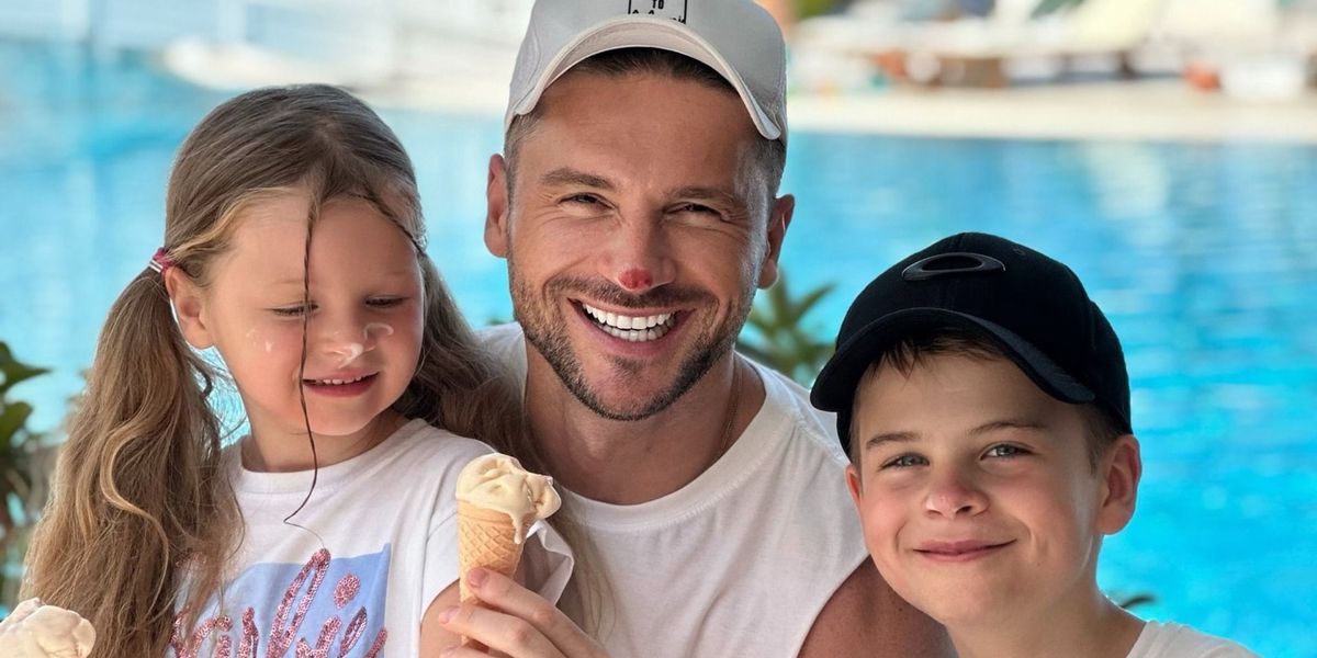 На снимке отец и его дети сидят за столом, в руках они держат мороженое: на Сергее надеты белая майка и аналогичного цвета кепка, тогда как на Анне - футболка с принтом «Барби», а на Никите - черная кепка и футболка с длинным рукавом.