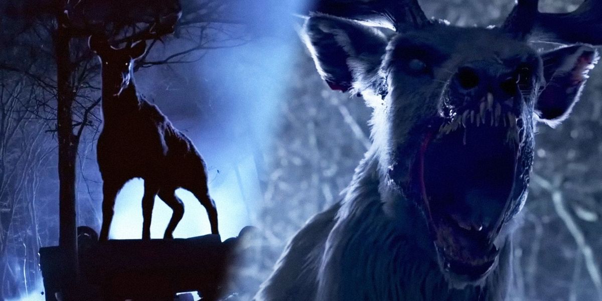 Позже монстр пробирается в дом — в дверном проеме появляется силуэт с рогами. Да, это все еще Бэмби. Но уже кардинально обезумевший.