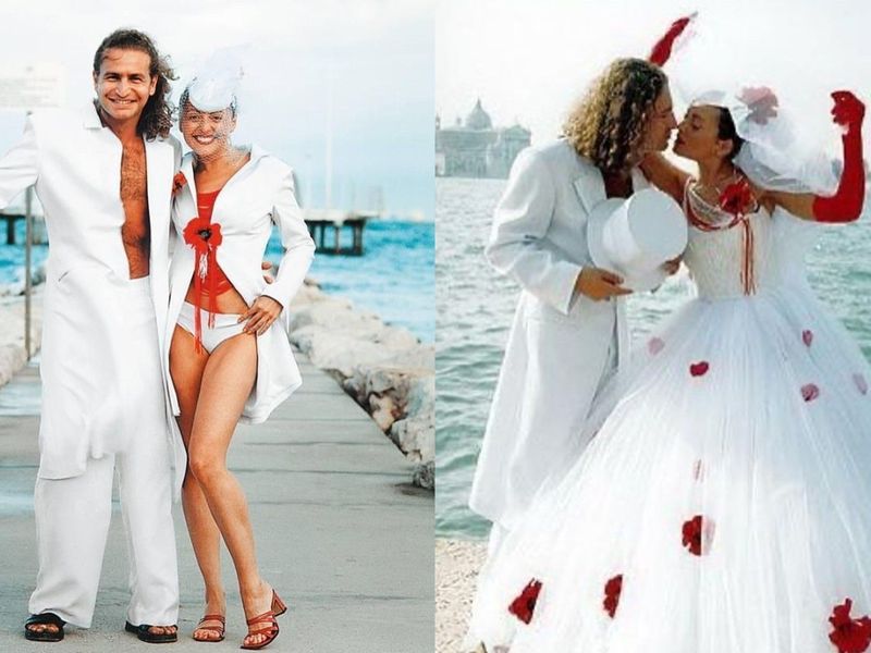 18 июля 2000 года Варум и Агутин расписались в московском загсе. Тихо, непублично. Но потом устроили пышное торжество в городе влюблённых – Венеции.Дизайнер Алиса Толкачёва создала для них невероятные образы. Анжелика – в белоснежном платье с огромной пышной юбкой, усыпанной алыми маками, и красных перчатках по локоть. Леонид – в длинном белом сюртуке на голое тело и гигантском цилиндре, похожий на безумного шляпника из сказки. Они выглядели как персонажи кино, сошедшие с экрана в реальность.