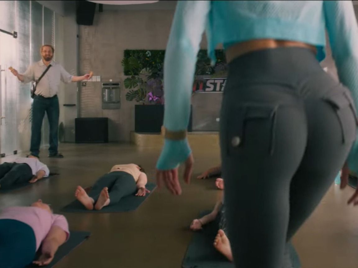 Так, трейлер семейного фильма "Скуф" начинается с крупных планов бюста и задней точки Карнавал в спортзале.
