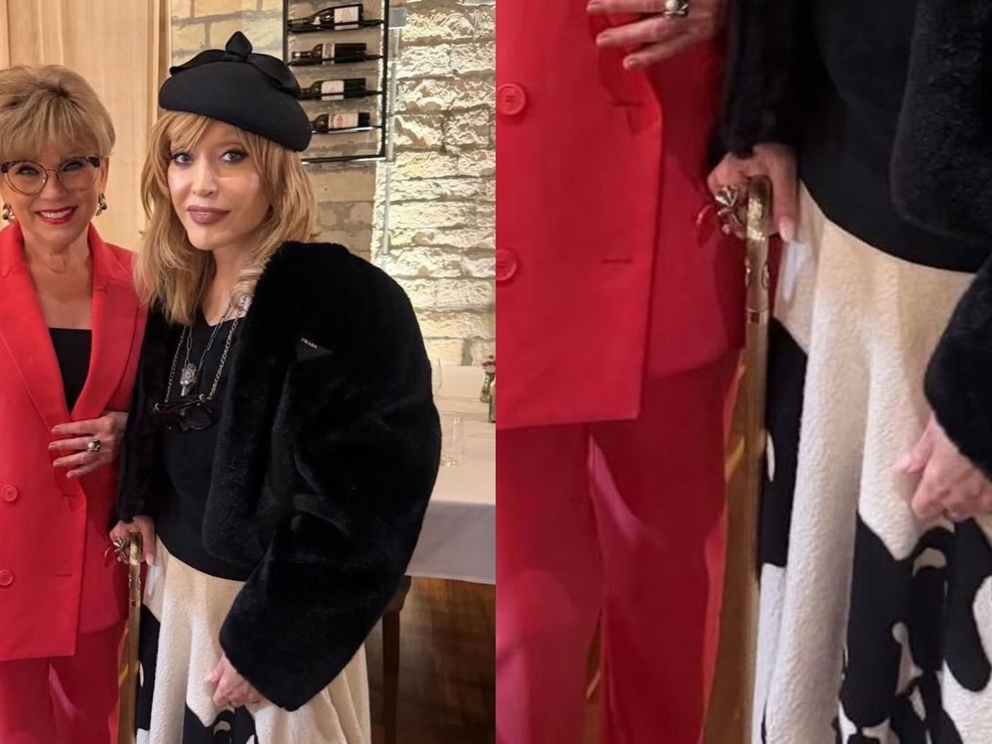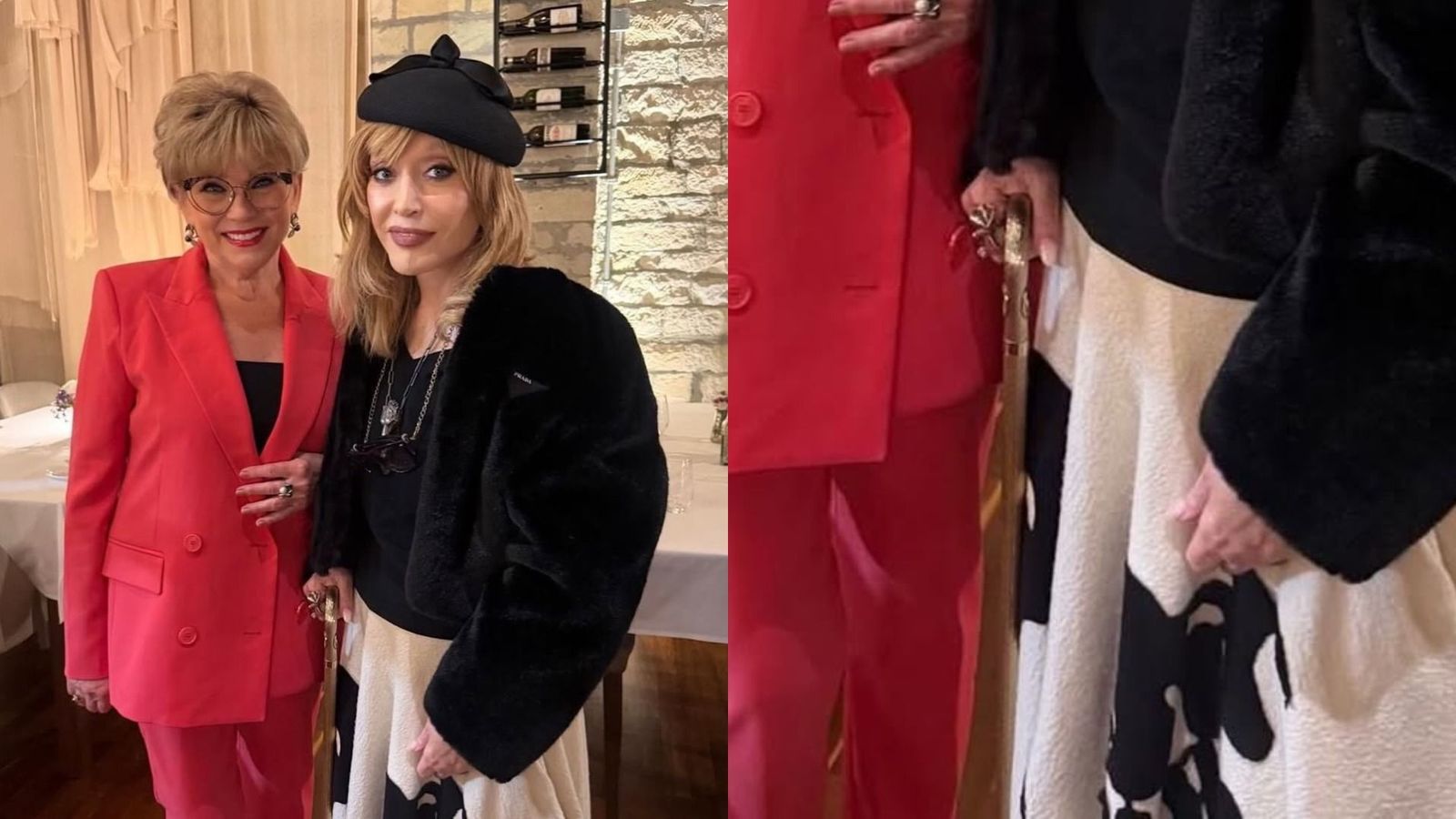 Выглядит певица бодро, улыбается. Хотя внимание все равно привлекает позолоченная трость, без которой она в последнее время, судя по всему, не выходит из дома.
