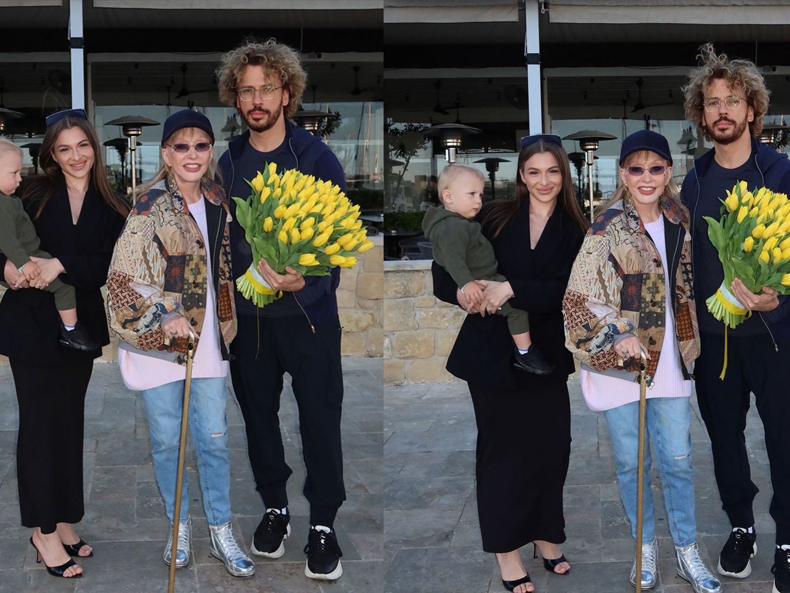 Снимок, судя по всему, сделали случайные прохожие в Лимасоле. Он появился в аккаунте пользовательницы под ником alin.ka_17.На фото - Пугачева стоит рядом с девушкой, которая держит на руках маленького ребенка. Рядом с букетом тюльпанов стоит муж певицы, комик Максим Галкин (в реестре иностранных агентов Минюста РФ).