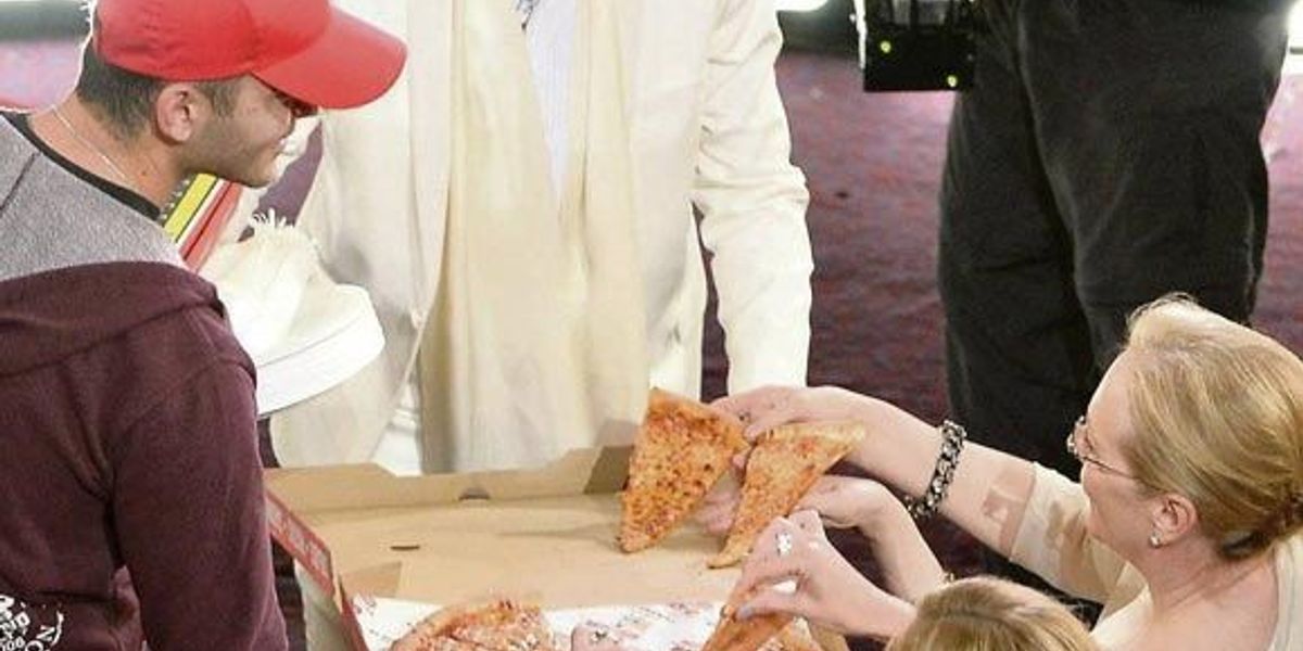 Пиццу решила заказать ведущая церемонии Эллен Дедженерес. Эдгар Мартиросян, совладелец службы доставки пиццы Big Mama's & Papa's, вначале подумал, что ему нужно привезти пиццу работникам сцены, однако удивлению его не было предела – оказалось, что закуски он доставил для звезд первой величины – Брэда Питта, Мерил Стрип, Джулии Робертс и других… всего знаменитости заказали два десятка различных пицц.